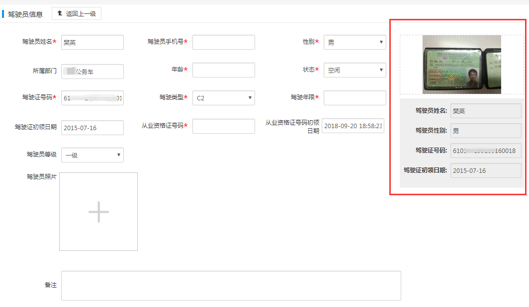为方便用户的使用,exlive2.0政企车务管理平台采用AI智能识别功能,实现自动采集证件信息,准确识别驾驶证、行驶证的详情信息。